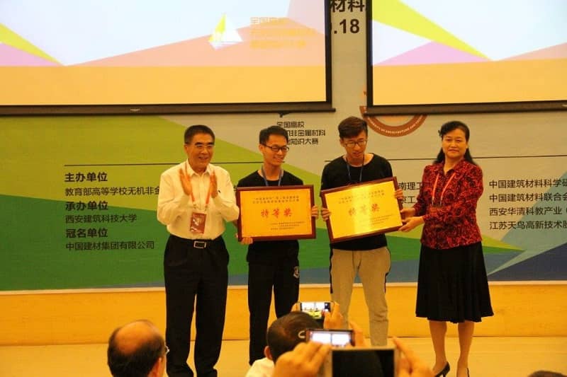 姚燕在致辭中介紹了中國(guó)建材集團(tuán)、中國(guó)建材總院和中國(guó)建材聯(lián)合會(huì)科教委的現(xiàn)狀、發(fā)展目標(biāo)。她講到,中國(guó)建材集團(tuán)是中國(guó)最大、世界領(lǐng)先的綜合性建材產(chǎn)業(yè)集團(tuán),中國(guó)建材總院是中國(guó)建材與無(wú)機(jī)非金屬領(lǐng)域規(guī)模最大、實(shí)力最強(qiáng)的科研開(kāi)發(fā)中心,中國(guó)建材聯(lián)合會(huì)科教委是由我國(guó)建材及相關(guān)領(lǐng)域具有豐富經(jīng)驗(yàn)和知識(shí)淵博的專(zhuān)業(yè)技術(shù)人員、教育工作者組成的行業(yè)科技、教育參謀咨詢服務(wù)機(jī)構(gòu),這三家單位都非常支持我國(guó)高等學(xué)校無(wú)機(jī)非金屬材料工程專(zhuān)業(yè)教育教學(xué)事業(yè)的發(fā)展,希望更多的材料學(xué)子學(xué)有所成后,積極投身到中國(guó)建材行業(yè),為行業(yè)發(fā)展添磚加瓦。大賽閉幕式上,徐德龍?jiān)菏亢鸵ρ嘟淌跒楂@得特等獎(jiǎng)的代表隊(duì)頒發(fā)了獎(jiǎng)牌。