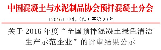 2016年度“全國預拌混凝土綠色清潔生產(chǎn)示范企業(yè)”評審結果公示