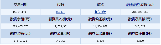 冀東水泥(000401)融資融券信息(11-17)
