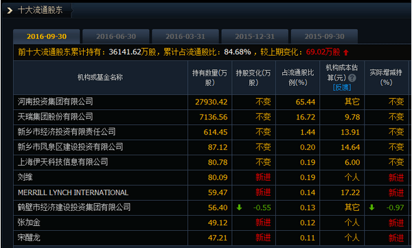 可以看到十大流通股東占84.68%,意味著其它流通股只有15.3%,今天的流通市值是73.4億,也就是除去十大流通股東,剩下的流通市值只有11.2億,游資機構(gòu)就最喜歡這樣的票了。
