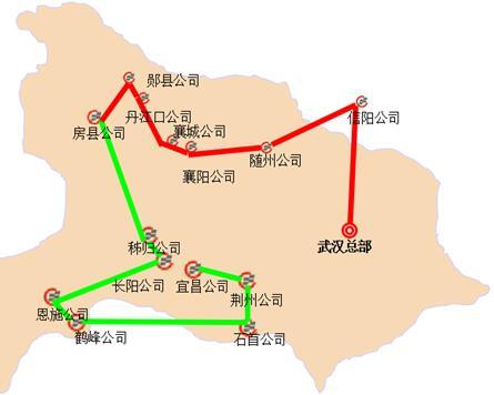 另外,賽事組委會還將“1000公里”的數(shù)字轉(zhuǎn)化為圖形,根據(jù)分公司的區(qū)域分布,共設(shè)定湖北東區(qū)線、湖北西區(qū)線、南部區(qū)域線、西部區(qū)域線、云南區(qū)域線、綜合線共6條虛擬路線圖,每條線路全長統(tǒng)一為1000公里,各參賽團(tuán)隊(duì)每到達(dá)線路中的一個途經(jīng)點(diǎn),線條將由紅色轉(zhuǎn)為綠色,點(diǎn)圈由小變大,表示此段路線已完成。