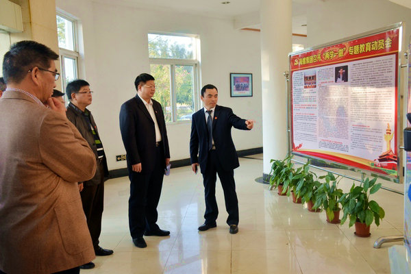 下午16點(diǎn)30分,汪書記一行首先來到公司中控室,公司總經(jīng)理吳鐵軍向汪書記簡要介紹了熟料制造工藝流程及環(huán)保監(jiān)控相關(guān)措施。接著,汪書記一行參觀了公司黨建宣傳展板,對公司黨委加強(qiáng)基層黨建建設(shè)、認(rèn)真組織開展“兩學(xué)一做”教育提出了表揚(yáng)。