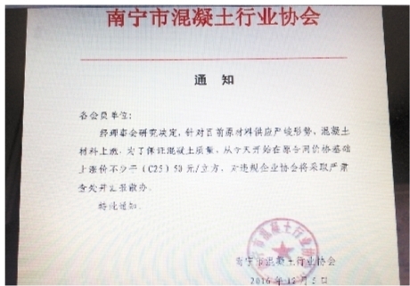 南寧市混凝土行業(yè)協(xié)會的漲價通知。