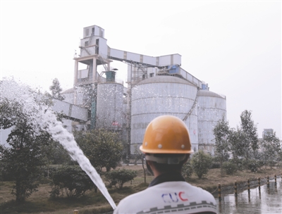 21日下午,位于青白江區(qū)的成都中聯(lián)水泥有限公司因?yàn)闄z修的原因沒有生產(chǎn),所以廠區(qū)內(nèi)十分清靜。不過,為了杜絕進(jìn)出車輛造成揚(yáng)塵污染,工作人員仍拉著四五米長的水管在路上噴淋。“生產(chǎn)時(shí)也是這么做的,以前兩三天一次,現(xiàn)在上下午各一次。”