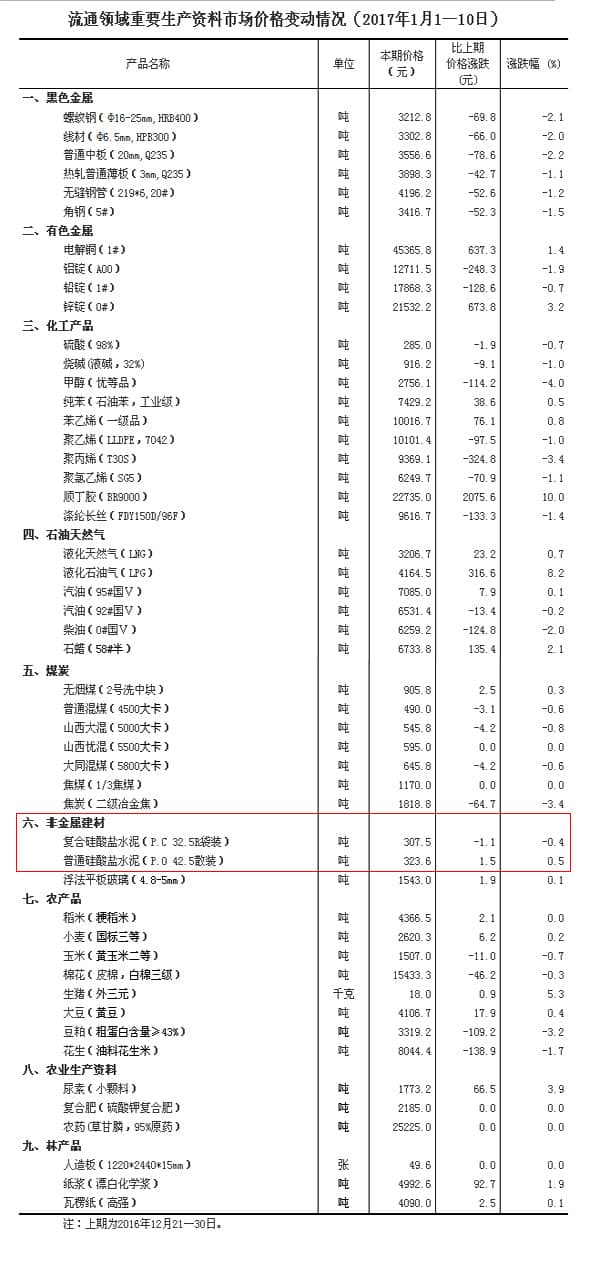 流通領(lǐng)域重要生產(chǎn)資料市場價格變動情況(2017年1月1-10日) 國家統(tǒng)計局