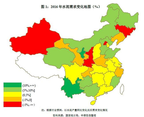 2016年在房地產(chǎn)明顯回暖及基建較好支撐疊加影響下水泥需求回暖,全年水泥需求同比增長2.5%。分區(qū)域看,基建投資帶動(dòng)下西南地區(qū)云南水泥需求漲幅居全國首位,達(dá)17.80%,而得益于京津冀一體化戰(zhàn)略背景下房地產(chǎn)開發(fā)投資快速增長,華北地區(qū)河北水泥需求同比增長9%。西北地區(qū)固定資產(chǎn)投資在前期持續(xù)高增長后急速回調(diào),陜西、新疆需求下降較為明顯;東北地區(qū)受房地產(chǎn)投資乏力影響,遼寧、吉林水泥需求下降;華東長三角區(qū)域基礎(chǔ)設(shè)施較為完善、城鎮(zhèn)化水平相對(duì)較高,基建投資增長空間不大,2016年浙江水泥需求亦有所下調(diào)。