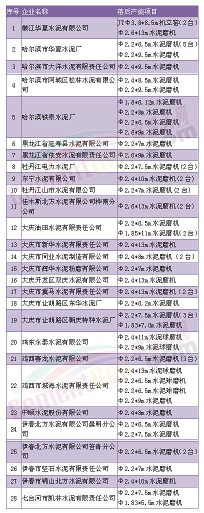 黑龍江水泥企業(yè)落后產(chǎn)能項(xiàng)目名單