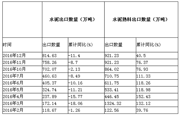 據有關數據顯示,2016年我國水泥出口數量為814.63萬噸,同比2015年減少了11.4%,水泥熟料2016年共出口921.23萬噸,累計同比增長了40.5%。