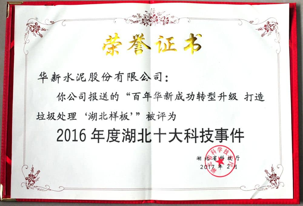 始創(chuàng)于1907年的華新水泥,被譽(yù)為“中國(guó)水泥工業(yè)的搖籃”。近年來(lái)針對(duì)我國(guó)固體廢棄物減量化、資源化、生態(tài)化處置需求,該公司聯(lián)合武漢理工大學(xué)組建產(chǎn)學(xué)研團(tuán)隊(duì),自主開(kāi)發(fā)出具有國(guó)際領(lǐng)先水平的水泥窯協(xié)同處置固體廢棄物成套技術(shù)與應(yīng)用,獲取專利85項(xiàng),研發(fā)成果涵蓋市政生活垃圾、市政污泥、工業(yè)危廢、污染土、漂浮物等5大處置平臺(tái)。其中水泥窯協(xié)同處理城市生活垃圾技術(shù)(HEC)成為我國(guó)城市生活垃圾處理的重要一極。目前,該公司在湖北、湖南、重慶、廣東、河南、云南、四川等省市運(yùn)行和在建的環(huán)保工廠共計(jì)24家,年處置廢棄物能力超過(guò)500萬(wàn)噸。近3年已安全生態(tài)化處置生活垃圾250萬(wàn)噸、處置市政污泥90余萬(wàn)噸、處置三峽庫(kù)區(qū)水面垃圾漂浮物50余萬(wàn)立方米、處置污染土75萬(wàn)噸、修復(fù)城市毒地上千畝,實(shí)現(xiàn)了傳統(tǒng)企業(yè)轉(zhuǎn)型升級(jí)和造福社會(huì)的雙豐收。由公司完成的“水泥窯高效生態(tài)化協(xié)同處置固體廢棄物成套技術(shù)與應(yīng)用”成果,榮獲2016年國(guó)家科學(xué)技術(shù)進(jìn)步獎(jiǎng)二等獎(jiǎng)。