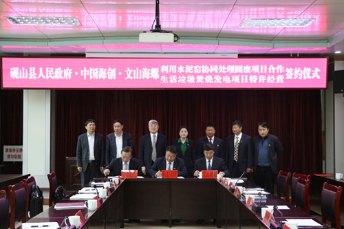 紀勤應(yīng)總經(jīng)理回顧了企業(yè)與政府互信互助,克服種種困難建設(shè)水泥和生活垃圾焚燒發(fā)電項目的情景,對硯山縣委、縣政府長期以來支持海螺、海創(chuàng)在硯山的發(fā)展表示感謝,希望雙方繼續(xù)發(fā)揮優(yōu)良的合作傳統(tǒng),配合開展好固廢項目規(guī)劃、征地、報批報建等工作,積極推進項目建設(shè),爭取早日投運,為七彩云南和美麗硯山建設(shè)增磚添瓦。