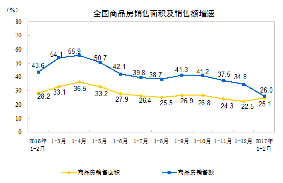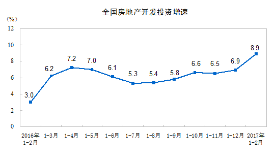今日國(guó)家統(tǒng)計(jì)局發(fā)布了2017年1-2月份全國(guó)房地產(chǎn)開發(fā)投資和銷售情況,具體內(nèi)容如下: