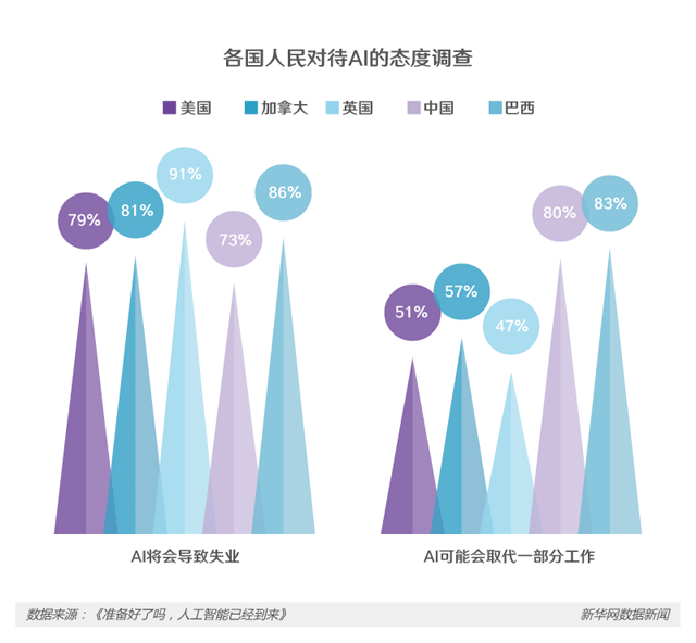 根據(jù)相關(guān)調(diào)查結(jié)果顯示,面對(duì)即將到來的人工智能時(shí)代,英國(guó)人對(duì)于自己的工作有強(qiáng)烈的危機(jī)感。相對(duì)來說,中國(guó)、巴西等新興市場(chǎng)國(guó)家對(duì)于人工智能帶來的挑戰(zhàn)保持相對(duì)樂觀。