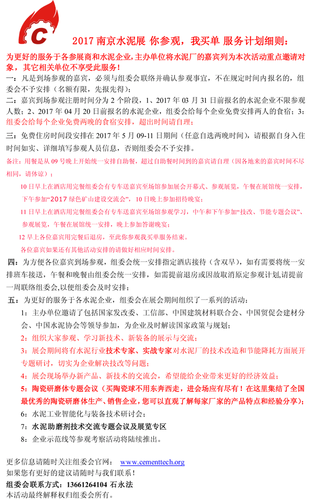 附:2017南京水泥展 你參觀,我買單 服務(wù)計(jì)劃細(xì)則: