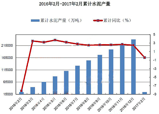 報告顯示,2017年1-2月,全國水泥產(chǎn)量累計24007.9萬噸,同比下降0.4%,降幅較去年同期收窄7.8個百分點(diǎn)。累計產(chǎn)量較去年同期下降133萬噸。2017年1-2月份,全國固定資產(chǎn)投資增速略有回升;房地產(chǎn)開發(fā)企業(yè)投資增速明顯回升,房屋施工面積和新開工面積增長勢頭較好,土地購置面積也由同比下降轉(zhuǎn)為增長,房地產(chǎn)市場回暖跡象明顯;基建投資高位增長。