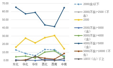 圖3:六大區(qū)域新型干法熟料生產(chǎn)線按規(guī)模分布情況(%)