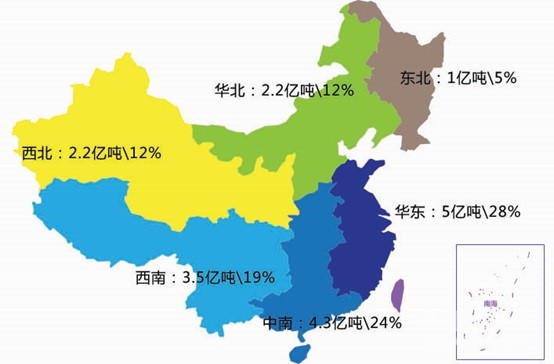產(chǎn)能分布:北方、南方三七開,北方過剩40%~50%、南方過剩25%~30%
