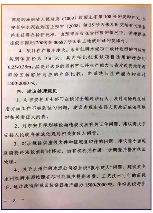 圖:關(guān)于永州紅獅水泥項(xiàng)目處理意見