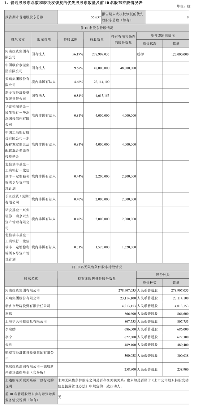 前10名無(wú)限售條件股東持股情況