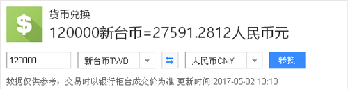 12萬臺幣兌換人民幣約27591元