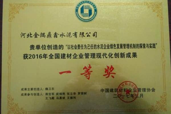 以質(zhì)量贏信譽(yù),以服務(wù)贏市場(chǎng)。通過質(zhì)量制度的保證、先進(jìn)工藝的引進(jìn)、優(yōu)良的售后服務(wù)等,不斷提高品牌的知名度、美譽(yù)度,“鼎鑫”牌水泥先后獲得了“河北省名牌產(chǎn)品”、“河北省著名商標(biāo)”等多項(xiàng)殊榮。并成為水泥行業(yè)率先通過產(chǎn)品、質(zhì)量、安全、環(huán)境、能源、測(cè)量六位一體管理體系認(rèn)證的企業(yè),是石家莊市工業(yè)50強(qiáng)和鹿泉市工業(yè)20強(qiáng)企業(yè)之一,并入圍“國(guó)家重點(diǎn)支持60家水泥工業(yè)結(jié)構(gòu)調(diào)整大型企業(yè)”名單。被國(guó)家發(fā)改委、工信部、環(huán)保部以及水泥協(xié)會(huì)等聯(lián)合評(píng)定為全國(guó)5000家水泥企業(yè)中的16家能效領(lǐng)跑企業(yè)之一,也是全國(guó)大型集團(tuán)環(huán)保標(biāo)桿企業(yè)。公司還是石家莊市唯一一家獲得第三屆石家莊市政府質(zhì)量獎(jiǎng)組織獎(jiǎng)和個(gè)人獎(jiǎng)雙項(xiàng)獎(jiǎng)項(xiàng)的單位,也是建材行業(yè)唯一一家獲得中國(guó)質(zhì)量協(xié)會(huì)2016年全國(guó)實(shí)施卓越績(jī)效模式先進(jìn)企業(yè)稱號(hào)的單位,榮獲2016年度河北省推行卓越績(jī)效模式優(yōu)秀企業(yè)稱號(hào)。