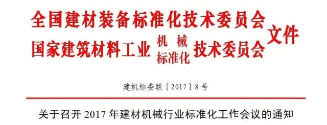 經(jīng)研究,全國(guó)建材裝備標(biāo)準(zhǔn)化技術(shù)委員會(huì)和國(guó)家建筑材料工業(yè)機(jī)械標(biāo)準(zhǔn)化技術(shù)委員會(huì)將于2017年6月17日~19日在福建省廈門市召開“2017年建材機(jī)械行業(yè)標(biāo)準(zhǔn)化工作會(huì)議”,屆時(shí)全國(guó)建材裝備標(biāo)準(zhǔn)化技術(shù)委員會(huì)(SAC/TC465)及陶瓷機(jī)械分會(huì)(SAC/TC465/SC1)二屆二次全體委員會(huì)議、國(guó)家建筑材料工業(yè)機(jī)械標(biāo)準(zhǔn)化技術(shù)委員會(huì)五屆二次全體委員會(huì)議同時(shí)召開?,F(xiàn)將會(huì)議有關(guān)事項(xiàng)通知如下: