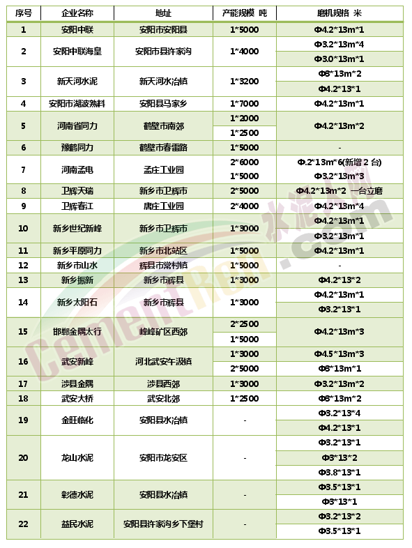 表1:河南區(qū)域參與競合水泥企業(yè)及生產(chǎn)線名錄