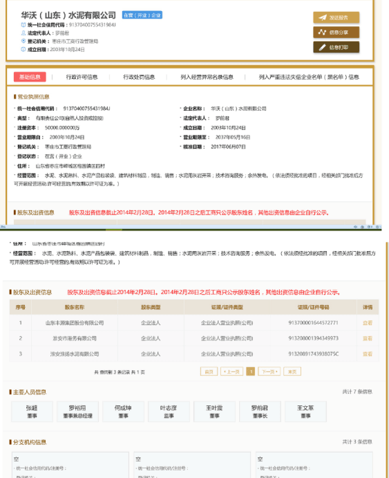 Huawo (Shandong) Cement Co., Ltd. and Huawo (Zaozhuang) Cement Co., Ltd. don’t have any association relationship. Votorantim Cement Co., Ltd. has transferred all shares of Huawo (Shandong) Cement Co., Ltd. to external in June 2017, and completed the change of industrial and commercial registration about shareholders and legal representatives of Huawo (Shandong) Cement Co., Ltd. on June 7 2017. Since June 2017, Votorantim Cement Co., Ltd. has no longer involve in the operation and management of Huawo (Shandong) Cement Co., Ltd., since then, any business activities of Huawo (Shandong) Cement Co., Ltd. have nothing to do with Votorantim Cement Co., Ltd. If there is any doubt as to the change of the shareholders and legal representatives of Huawo (Shandong) Cement Co., Ltd., you can inquire it from the national enterprise credit information publicity system (http://www.gsxt.gov.cn/corp-query-homepage.html)