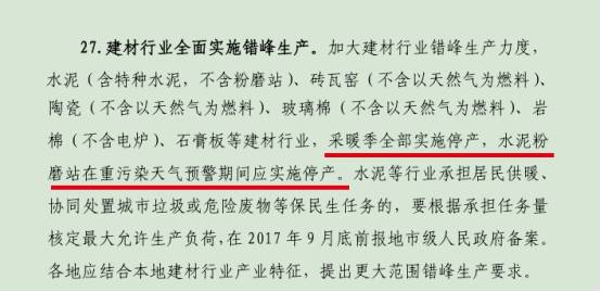 水泥等行業(yè)承擔(dān)居民供暖、協(xié)同處置城市垃圾或危險廢物等保民生任務(wù)的,要根據(jù)承擔(dān)任務(wù)量核定最大允許生產(chǎn)負(fù)荷,在2017年9月底前報地市級人民政府備案。各地應(yīng)結(jié)合本地建材行業(yè)產(chǎn)業(yè)特征,提出更大范圍錯峰生產(chǎn)要求。