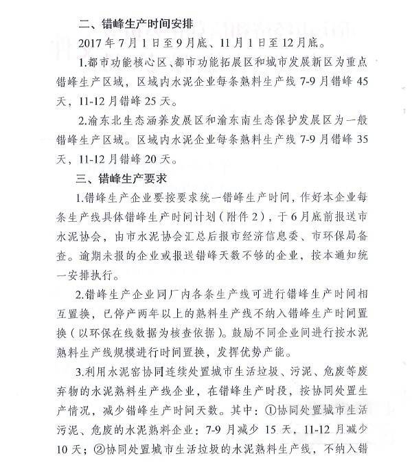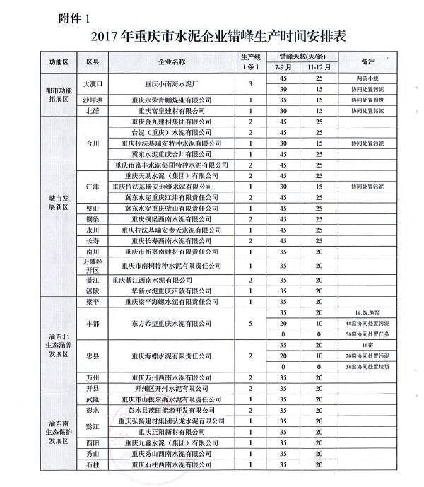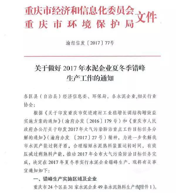 重慶市經(jīng)信委會(huì)和環(huán)境保護(hù)局此前聯(lián)合下發(fā)的《關(guān)于做好2017年水泥企業(yè)夏冬季錯(cuò)峰生產(chǎn)工作的通知》要求,7-9月間,企業(yè)平均停窯天數(shù)在35-45天之間。