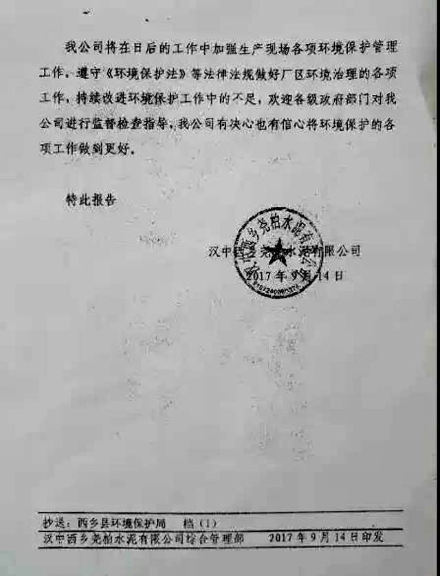 漢中西鄉(xiāng)堯柏水泥有限公司已經(jīng)向環(huán)保部門出具了整改報(bào)告,據(jù)了解,對(duì)于該公司的此次整改是否達(dá)標(biāo),西鄉(xiāng)縣環(huán)保局尚未對(duì)其進(jìn)行驗(yàn)收。