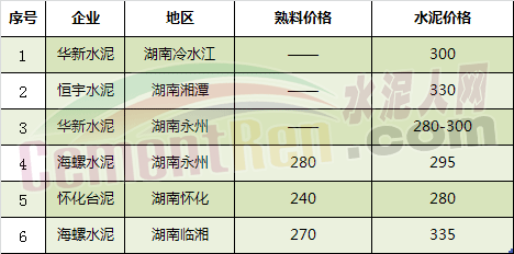 9月14日湖南地區(qū)熟料及水泥價(jià)格一覽
