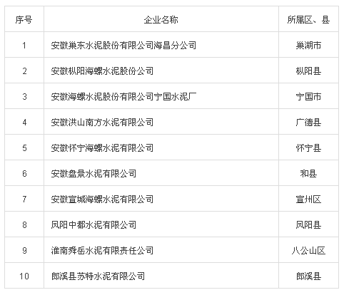 安徽省2016年度環(huán)保誠(chéng)信企業(yè)共11家水泥企業(yè);2016年環(huán)保良好企業(yè)共10家水泥企業(yè);2016年度環(huán)保警示企業(yè)為巢湖市中材安徽水泥有限公司。