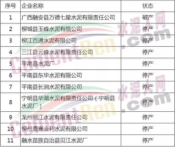 破產(chǎn)及停產(chǎn)水泥企業(yè)名單