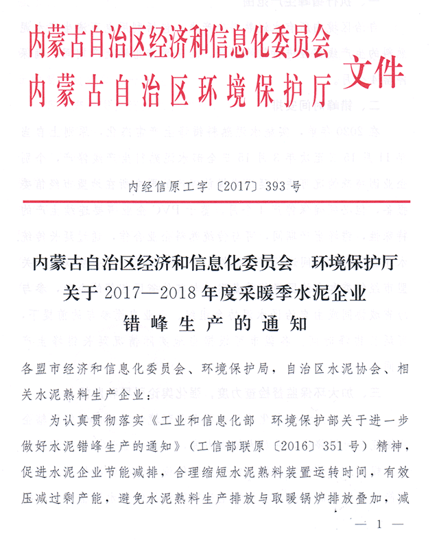 近日,內(nèi)蒙古自治區(qū)經(jīng)信委聯(lián)合內(nèi)蒙古環(huán)保廳發(fā)布《關(guān)于2017-2018年度采暖季水泥企業(yè)錯(cuò)峰生產(chǎn)的通知》。通知稱:為認(rèn)真貫徹落實(shí)《工業(yè)和信息化部 環(huán)境保護(hù)部關(guān)于進(jìn)一步做好水泥錯(cuò)峰生產(chǎn)的通知》精神,促進(jìn)水泥企業(yè)節(jié)能減排,合理縮短水泥熟料裝置運(yùn)轉(zhuǎn)時(shí)間,有效壓減過剩產(chǎn)能,避免水泥熟料生產(chǎn)排放與取暖鍋爐排放疊加,減輕采暖期大氣污染,經(jīng)研究決定,對(duì)2017-2018年度采暖季水泥企業(yè)(含利用電石渣)做如下安排,認(rèn)真貫徹執(zhí)行。