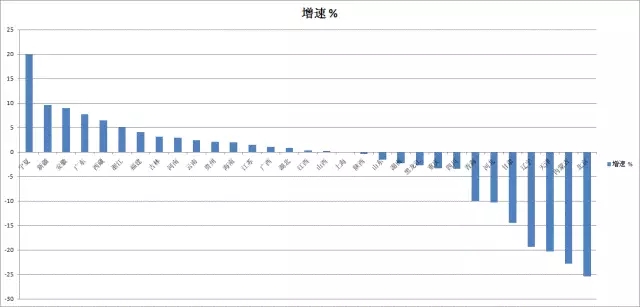 1-9月各省市區(qū)水泥產(chǎn)量增降幅