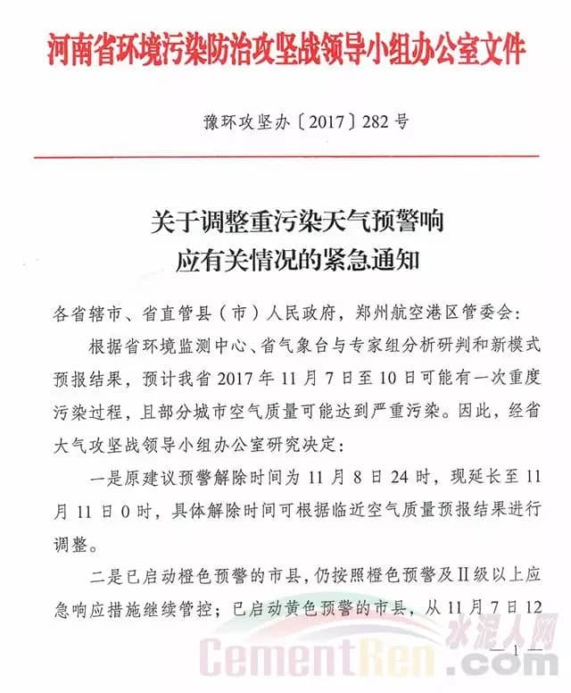 日前,河南省環(huán)境污染防治攻堅戰(zhàn)領(lǐng)導(dǎo)小組辦公室下發(fā)《關(guān)于調(diào)整重污染天氣預(yù)警響應(yīng)有關(guān)情況的緊急通知》要求將前期橙色預(yù)警II級管控延期至11月11日0時,具體解除時間可根據(jù)臨近空氣質(zhì)量預(yù)報結(jié)果進(jìn)行調(diào)整。