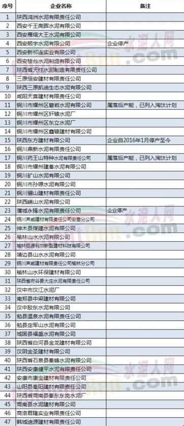 陜西省水泥熟料及水泥粉磨站企業(yè)名單如下: