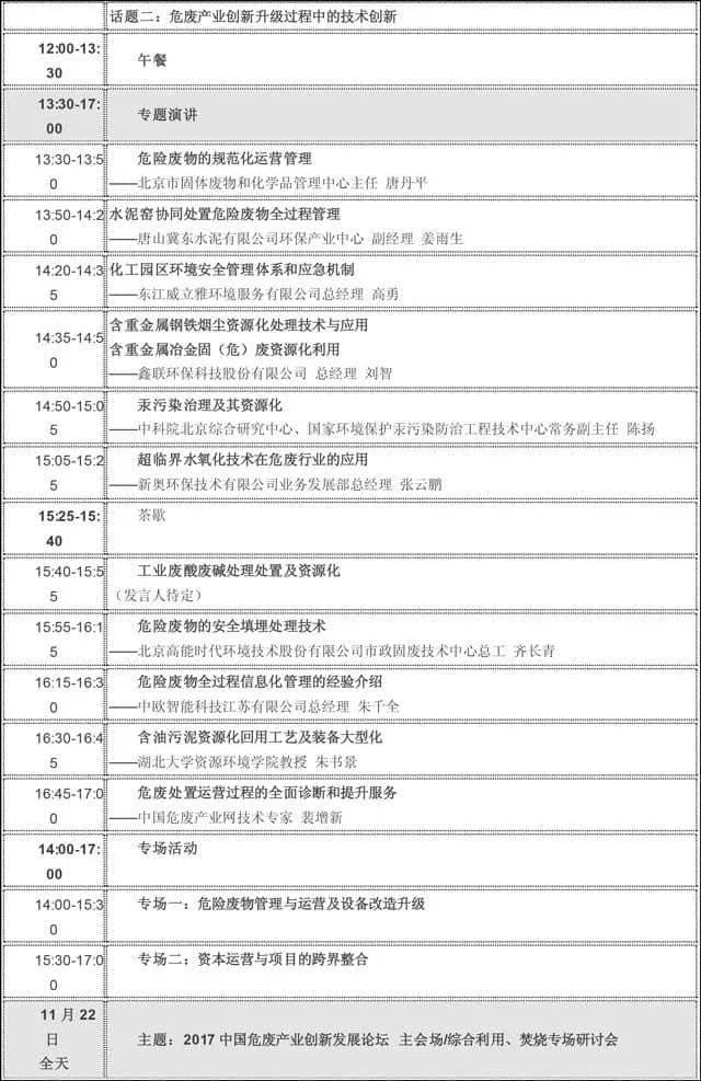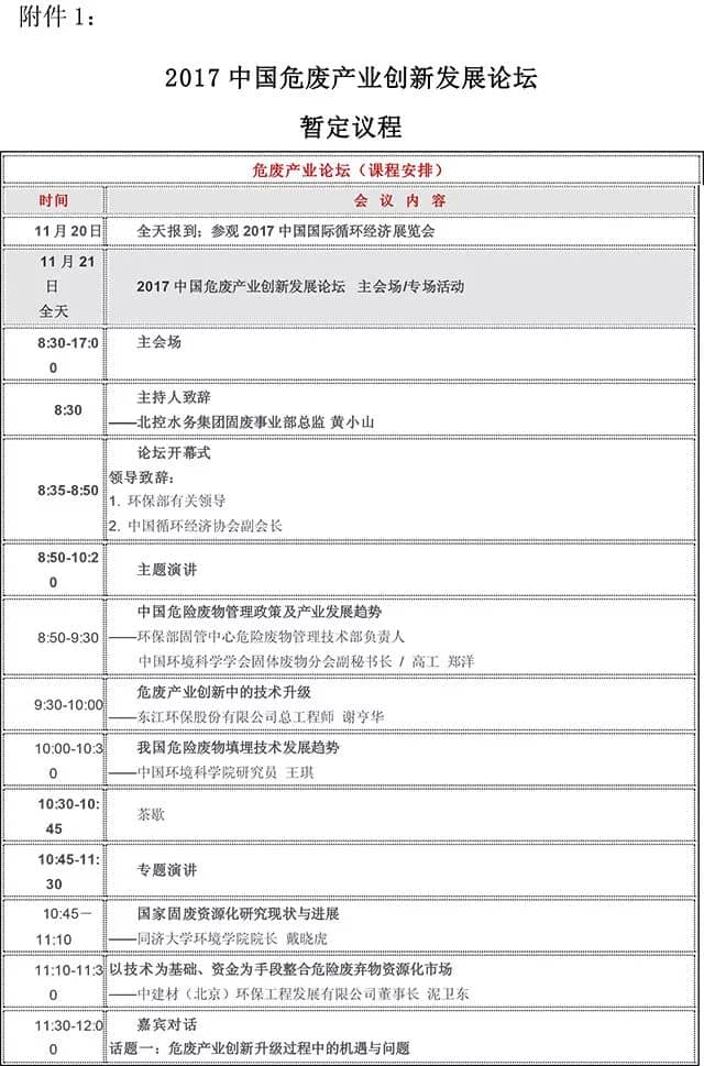 1、2017中國(guó)危廢產(chǎn)業(yè)創(chuàng)新發(fā)展論壇暨危廢資源化利用與無(wú)害化處置研討會(huì)暫定議程