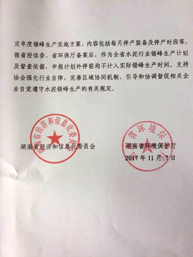 據(jù)了解以上文件是在11月10日湖南省全省水泥行業(yè)錯峰生產(chǎn)和減排工作會議后發(fā)布的正式通知。