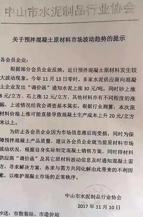 混凝土漲價(jià)函