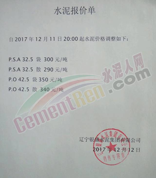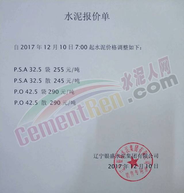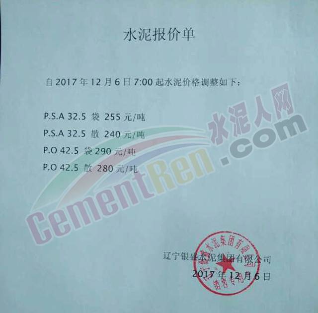 【水泥人網(wǎng)】日前,遼寧銀盛水泥集團(tuán)銷售部發(fā)布通知稱:自12月11日下午四點起袋裝水泥、散裝水泥停止付貨,付貨時間改為每天早8點至下午4點。白班正常付貨、夜班、零點班不再付貨。