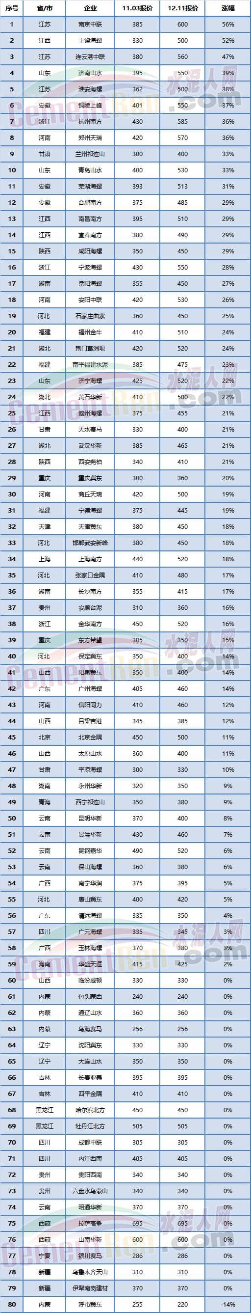 又一批水泥企業(yè)集體漲價!部分省份漲幅驚人!