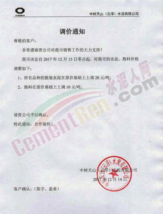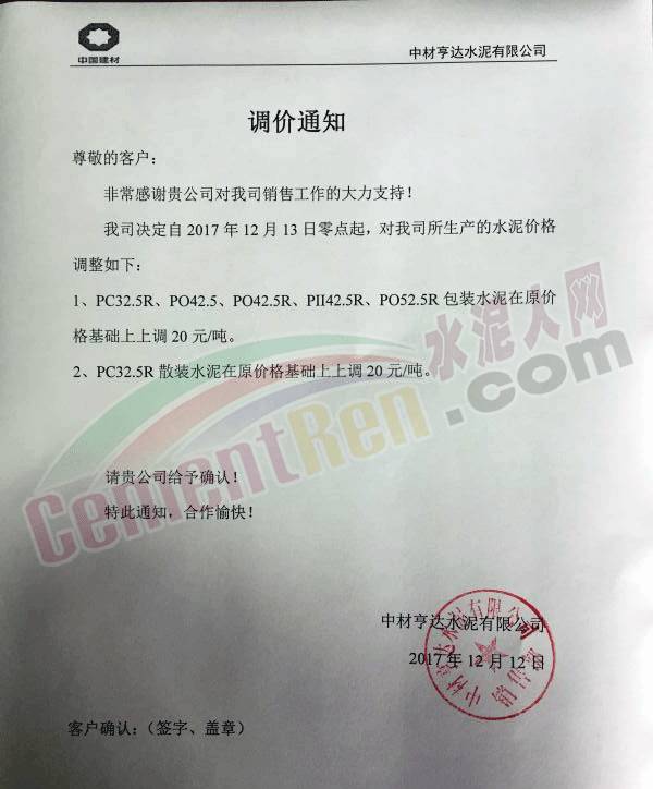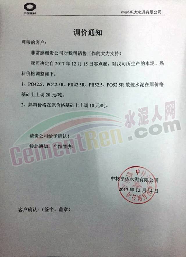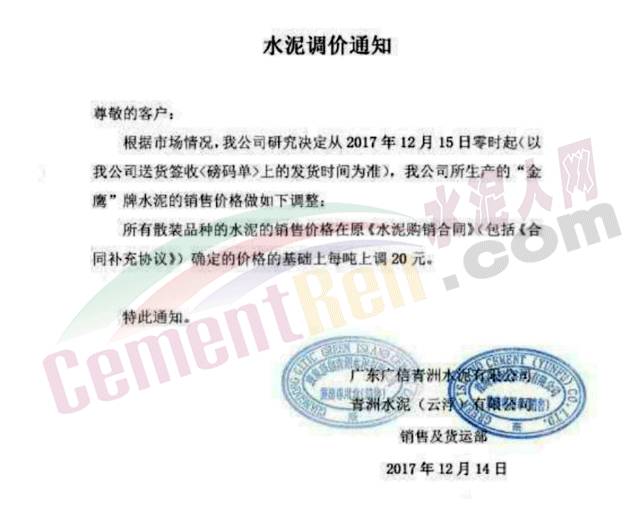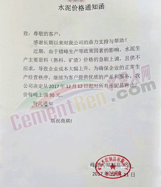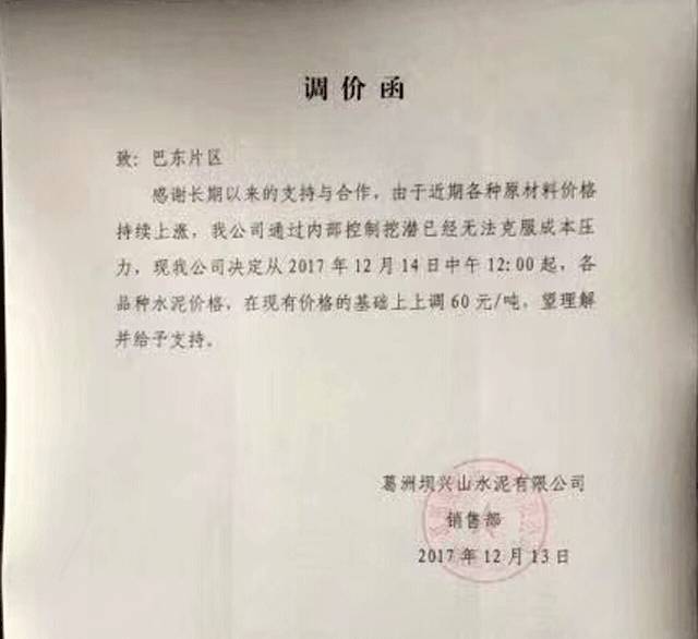 近一周,多區(qū)域企業(yè)再一次上調(diào)水泥價(jià)格,葛洲壩興山水泥有限公司日前發(fā)布調(diào)價(jià)函,對(duì)巴東片區(qū)自12月14日中午12點(diǎn)起,各品種水泥在原價(jià)格基礎(chǔ)上上調(diào)60元/噸。