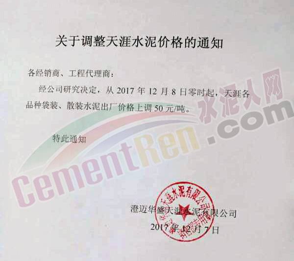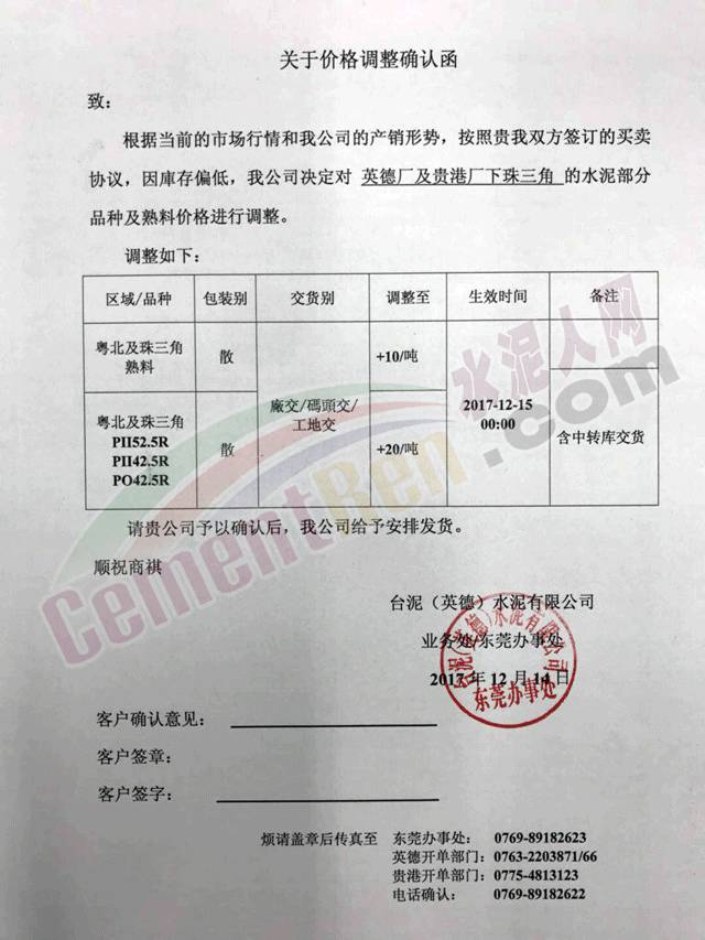 廣東地區(qū)12月9日佛山海螺PO包裝上調(diào)10元噸,PC包裝上調(diào)11元噸,12月11日清新海螺、廣英PO包裝、PC散包裝上調(diào)30元噸,12月12日江門海螺PO/PC包裝上調(diào)20元噸,12月13日英德海螺、臺(tái)泥、華潤、中材PO包裝、PC散包裝上調(diào)20元噸。