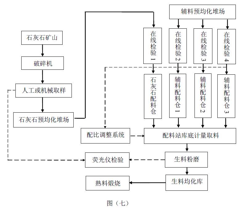 (2)原料配比的調(diào)整依據(jù)是“中子活化分析儀在線(xiàn)檢驗(yàn)2”和出磨生料“熒光儀檢驗(yàn)”的數(shù)據(jù),二者相互聯(lián)系,缺一不可,組成了一個(gè)聯(lián)合控制模式;