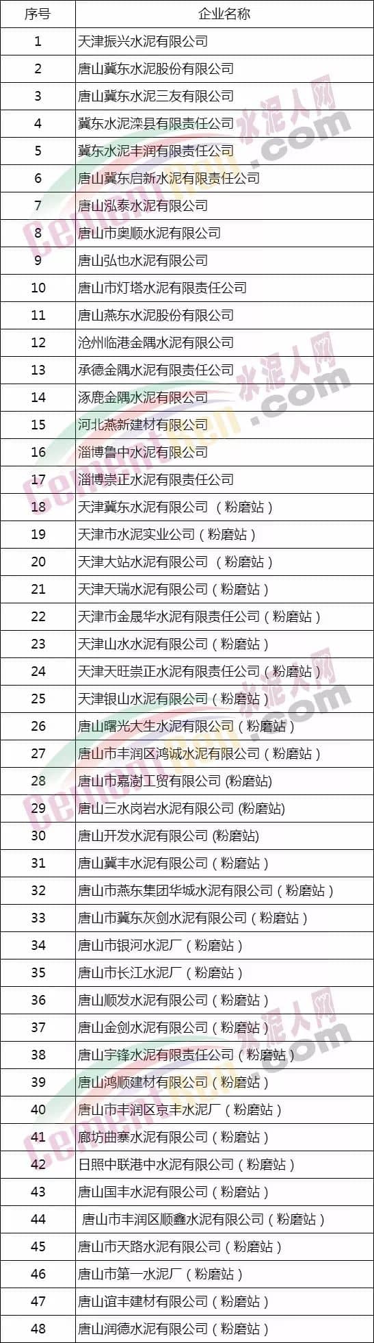 據(jù)水泥人網(wǎng)了解,天津市城鄉(xiāng)建設(shè)委員會自2016年10月份以來,發(fā)布的《旋窯水泥生產(chǎn)企業(yè)名錄》中,共有90多家水泥企業(yè)。