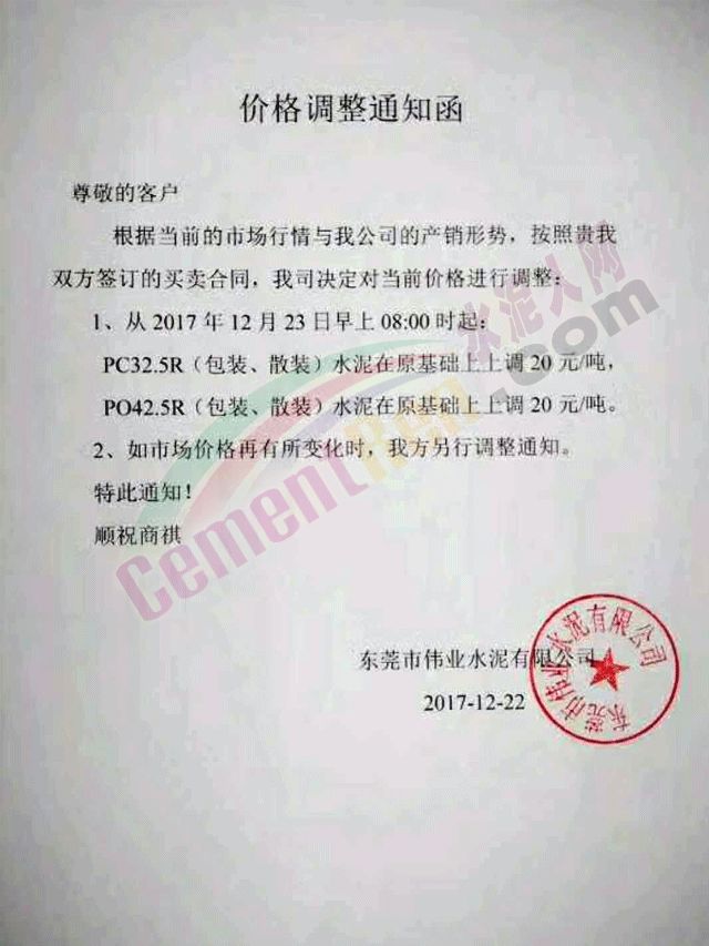 據(jù)水泥人網(wǎng)了解,廣東東莞市偉業(yè)水泥有限公司近七天內(nèi)三次上調(diào)水泥價格。其中PC32.5R袋裝、散裝水泥七天共漲價50元/噸;PO42.5袋裝、散裝水泥七天共漲60元/噸。