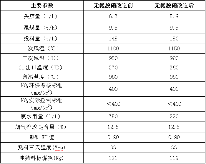 主要參數(shù)無(wú)氨脫硝改造前無(wú)氨脫硝改造后