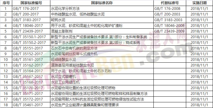 表1 水泥相關(guān)國家標(biāo)準(zhǔn)發(fā)布清單