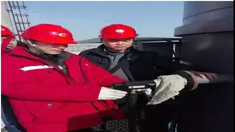 監(jiān)測人員對1#脫硫塔總排口廢氣現(xiàn)場監(jiān)測